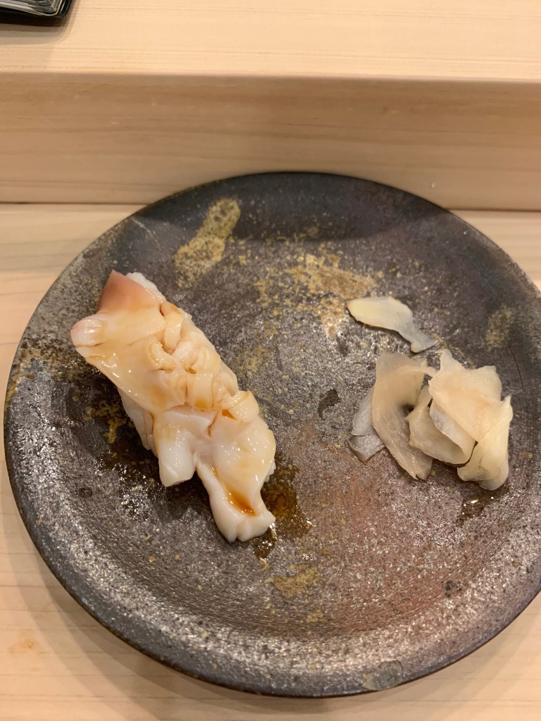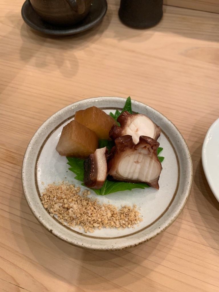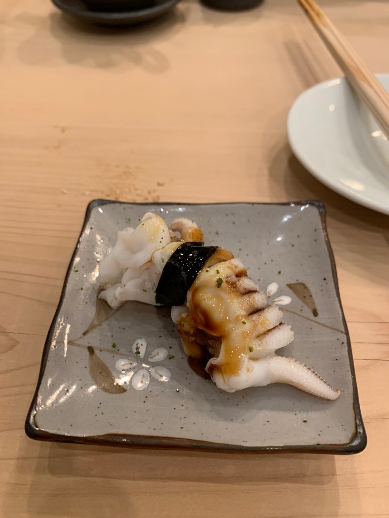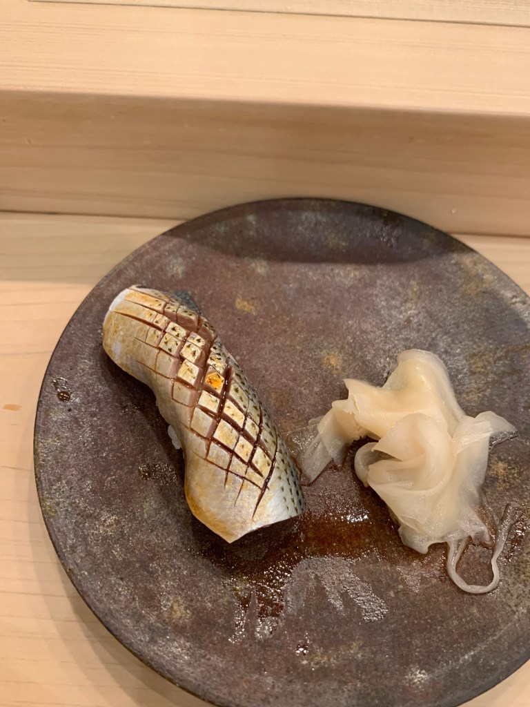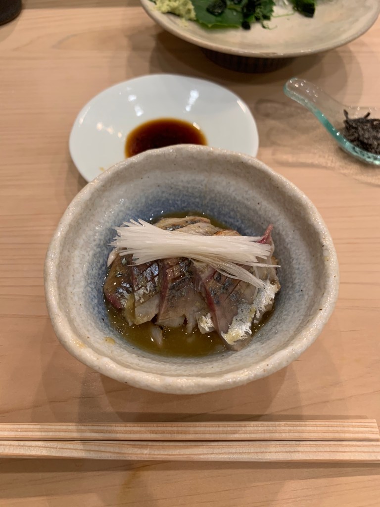 基本上我認為鮨 まつい調理食材的功夫挺好的,酒肴中的滷章魚有軟、銀皮魚用各式手法 (煙燻、煙燻後再加醋調味)都相當美味