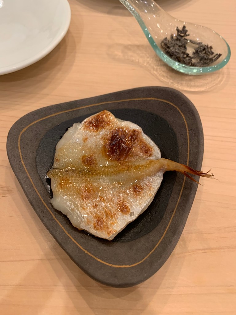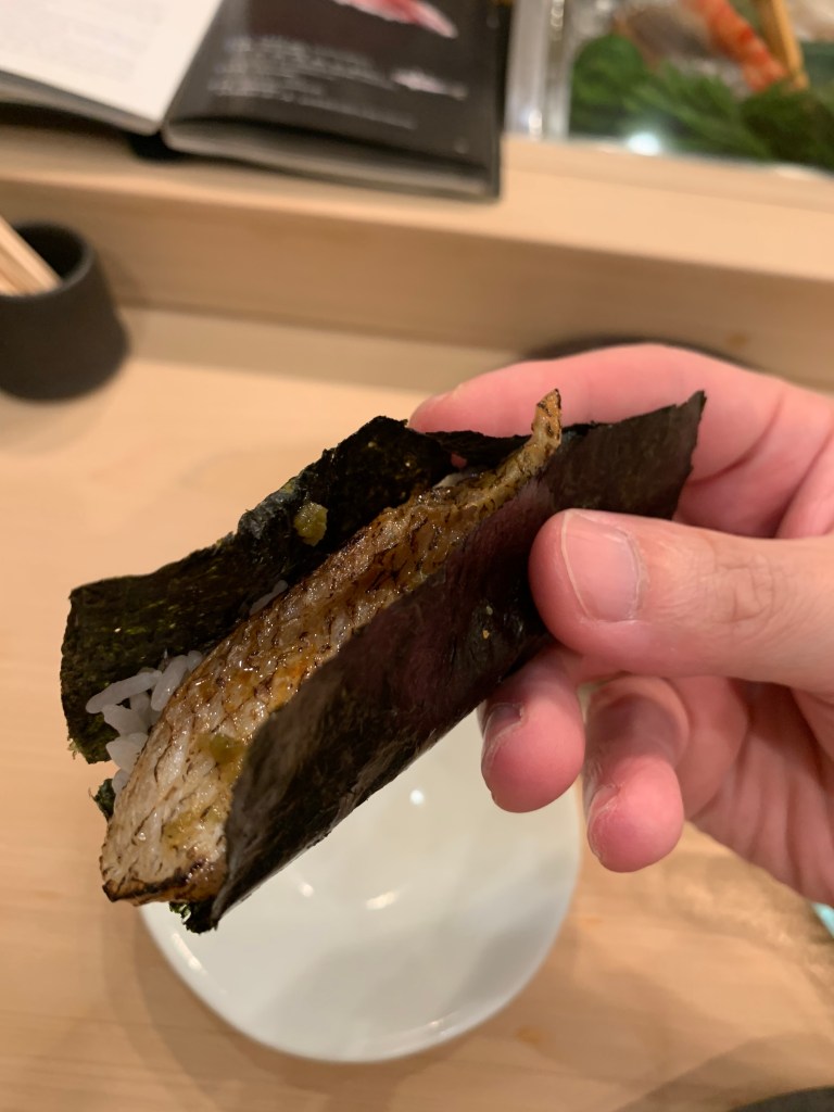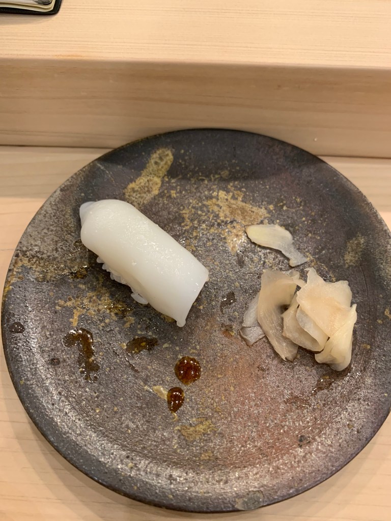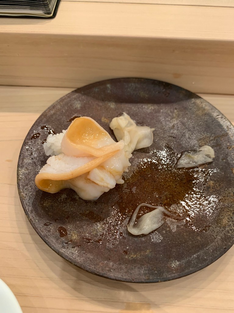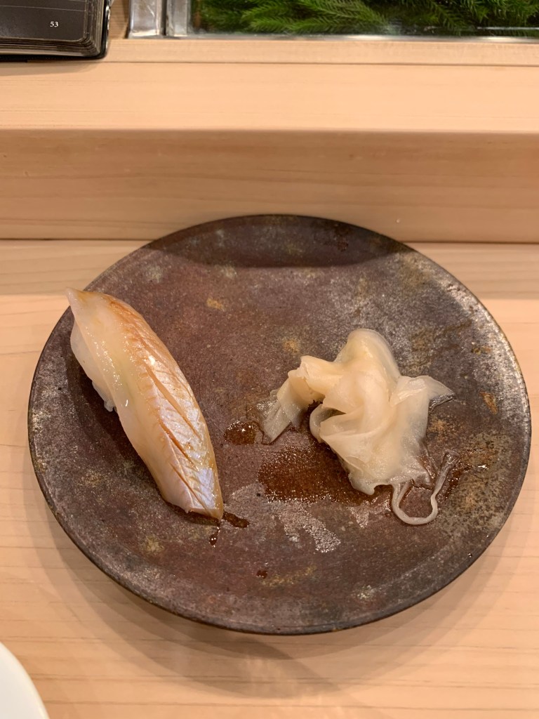基本上我認為鮨 まつい調理食材的功夫挺好的,酒肴中的滷章魚有軟、銀皮魚用各式手法 (煙燻、煙燻後再加醋調味)都相當美味