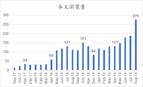又過了四個月,2019年的8月創新高,不知是季節性因素,還是搜尋引擎的排名又往前了一點