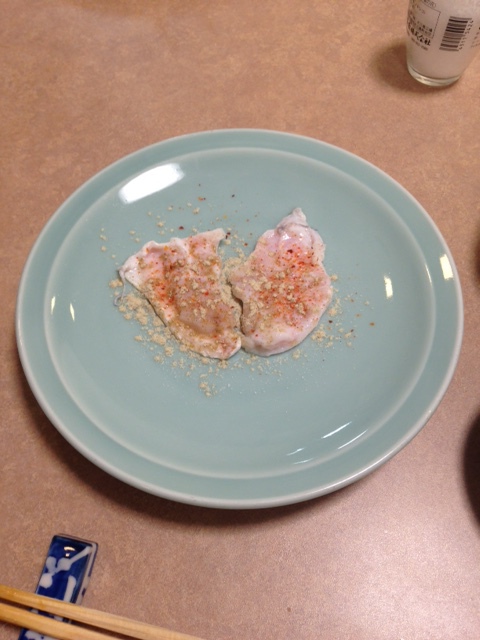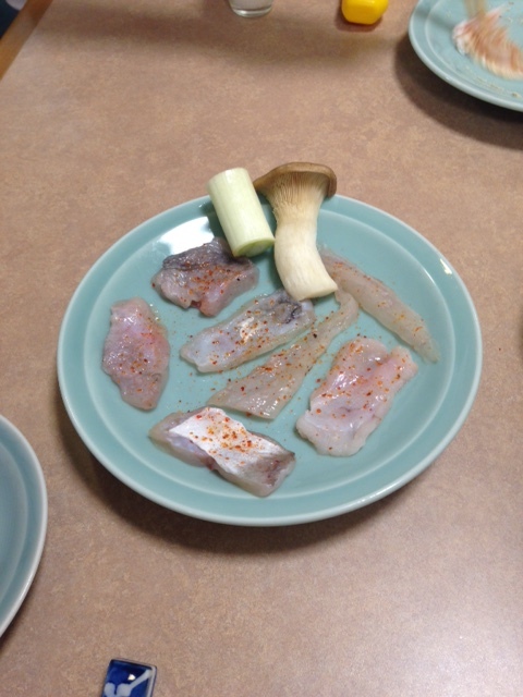 魚肉薄切沾柚子醋和醬油,也可以直接沾海鹽吃,同時會有相當有嚼勁的魚皮