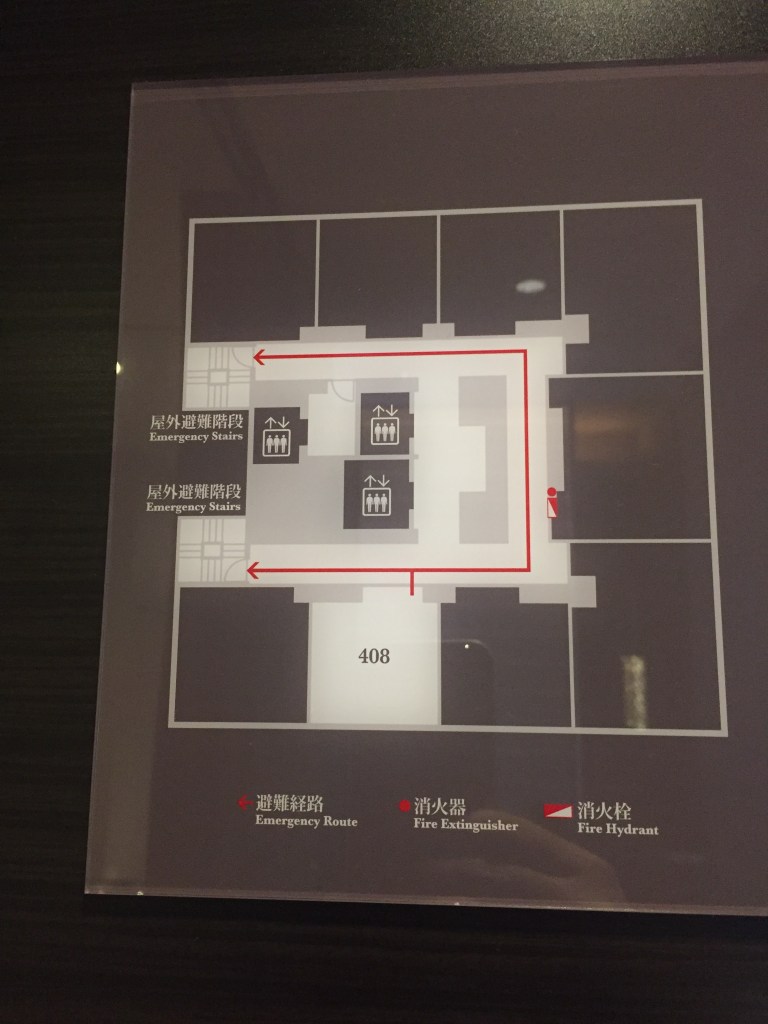 應該是因為基地方正,建物也中規中矩,隔間自然而然就長成這樣。可以看出酒店除了兩個房客使用的電梯,還有一座貨梯。核心偏左,大樓左邊原本可能會成為暗房的空間設兩座逃生梯,因此估計這家酒店的104間客房沒有一間是暗房。這棟大樓會出現暗房主要是因為左邊緊鄰建物。 雖然不用擔心暗房,但是酒店左側與後側的房間因為面對路寬較小的巷弄,景觀自然就差了些。