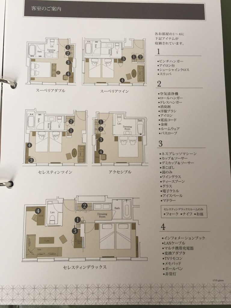 THE CELESTINE GINZA 有五種房型,標準房為 Superior Double,一大床,客房面積23.5平米。另有兩間 Celestine Deluxe 的套房設在13樓,一間無障礙客房設在2樓,其餘的就是兩小床的房型 Celestine Twin 與 Superior Twin。標準房面積不算大,落在 Mori Trust Hotel REIT 標準中的 Upscale。
