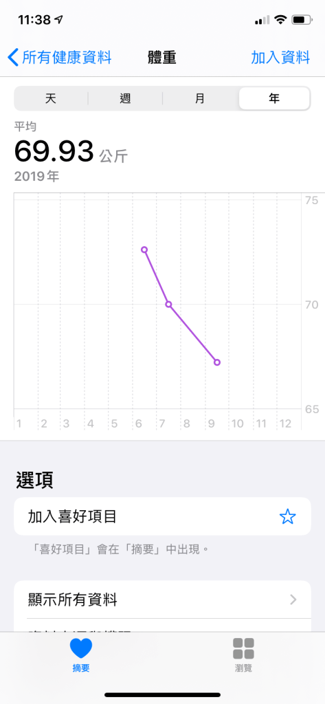 上圖是我從2019年4月22日至同年的9月22日的體重紀錄,體重在五個月的時間內從77.7公斤一路降至67.6公斤,平均每個月瘦兩公斤。