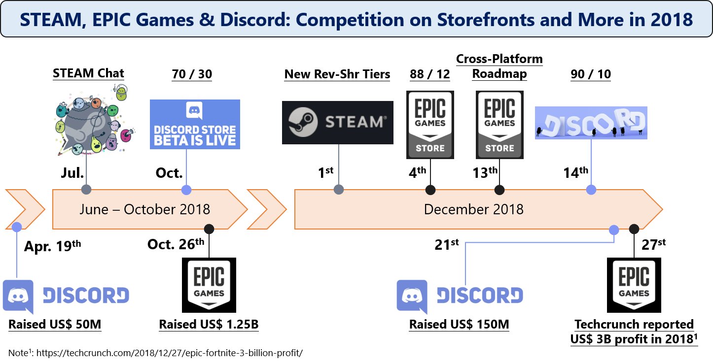 Chart below shows the 2018 timeline of competition on online storefronts and more among STEAM, EPIC Games and Discord.